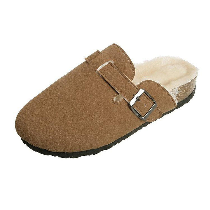 Round Head Comfortable Casual Flat Bottom Plus Fluffy Lazy Half Slippers Female Trend